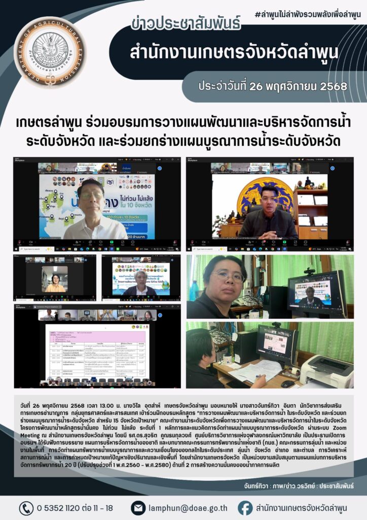 เกษตรลำพูน ร่วมอบรมการวางแผนพัฒนาและบริหารจัดการน้ำระดับจังหวัด และร่วมยกร่างแผนบูรณาการน้ำระดับจังหวัดBy admin_doae / 1 ธันวาคม 2025