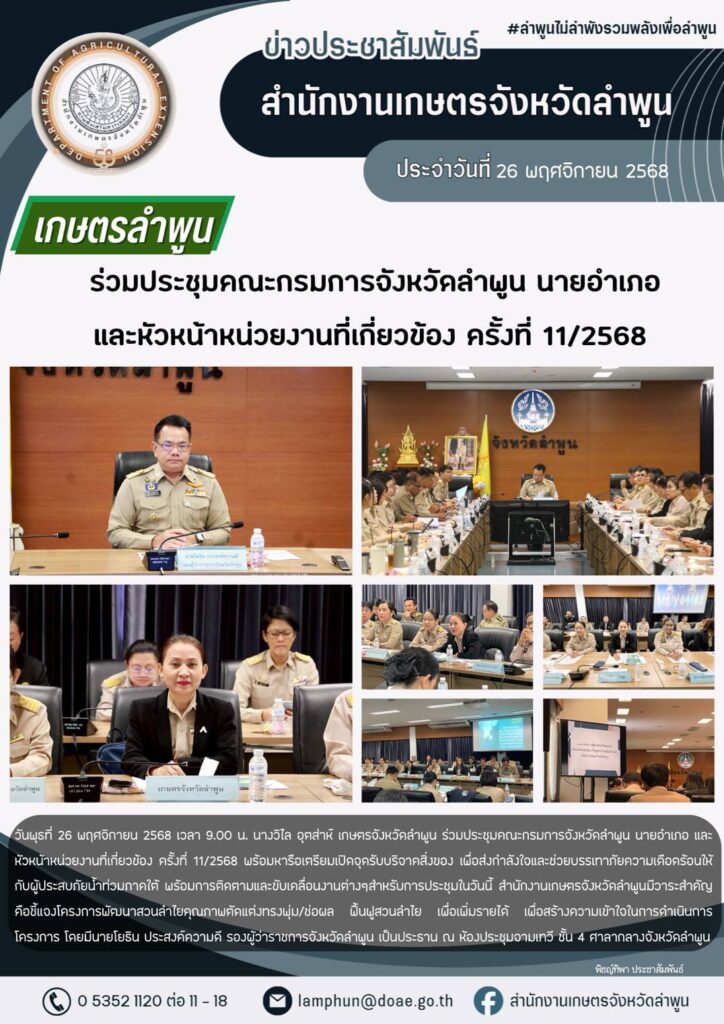 เกษตรลำพูน ร่วมประชุมคณะกรมการจังหวัดลำพูน นายอำเภอ และหัวหน้าหน่วยงานที่เกี่ยวข้อง ครั้งที่ 11/2568By admin_doae / 1 ธันวาคม 2025