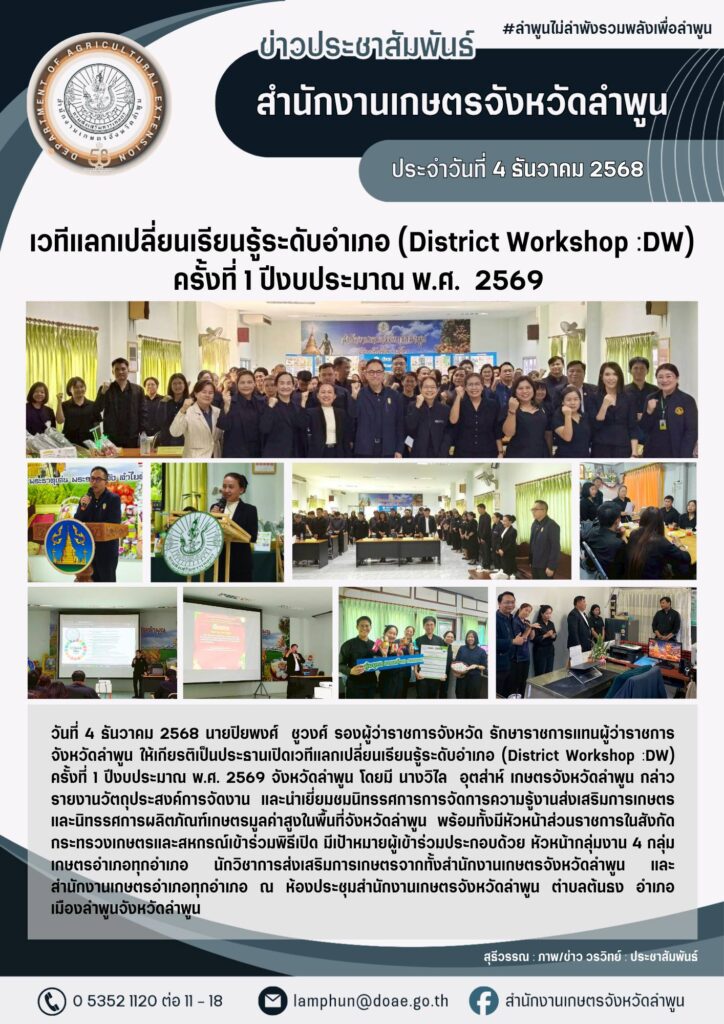 เวทีแลกเปลี่ยนเรียนรู้ระดับอำเภอ (District Workshop :DW) ครั้งที่ 1 ปีงบประมาณ พ.ศ. 2569By admin_doae / 8 ธันวาคม 2025