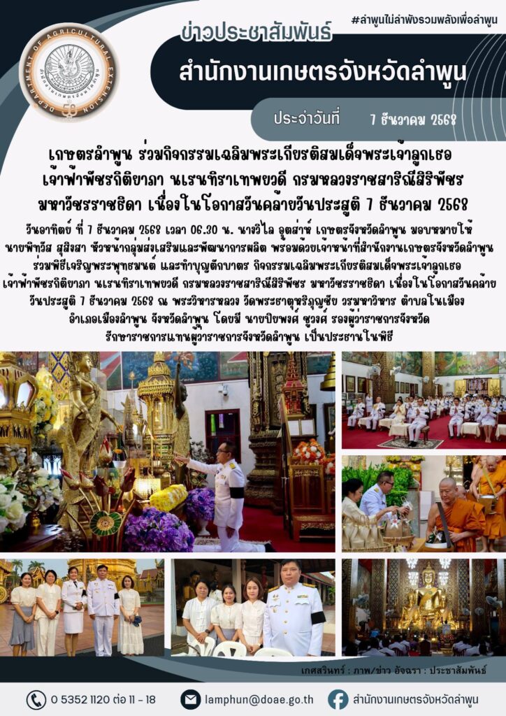 เกษตรลำพูน ร่วมกิจกรรมเฉลิมพระเกียรติสมเด็จพระเจ้าลูกเธอ เจ้าฟ้าพัชรกิติยาภา นเรนทิราเทพยวดี กรมหลวงราชสาริณีสิริพัชร มหาวัชรราชธิดา เนื่องในโอกาสวันคล้ายวันประสูติ 7 ธันวาคม 2568By admin_doae / 8 ธันวาคม 2025