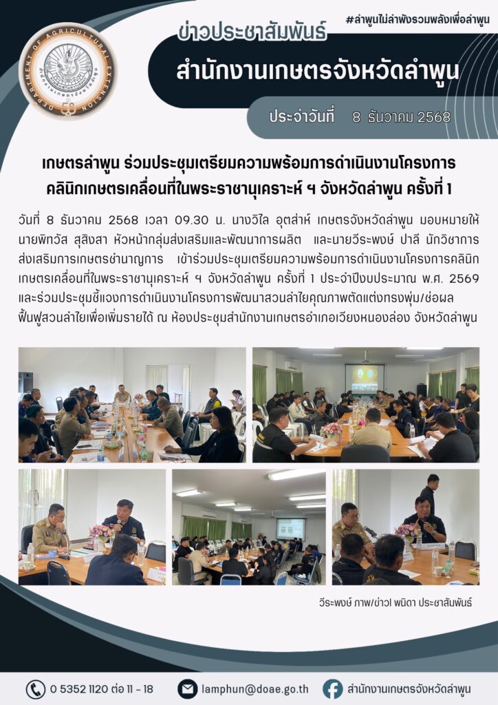 เกษตรลำพูน ร่วมประชุมเตรียมความพร้อมการดำเนินงานโครงการคลินิกเกษตรเคลื่อนที่ในพระราชานุเคราะห์ จังหวัดลำพูน ครั้งที่ 1By admin_doae / 9 ธันวาคม 2025