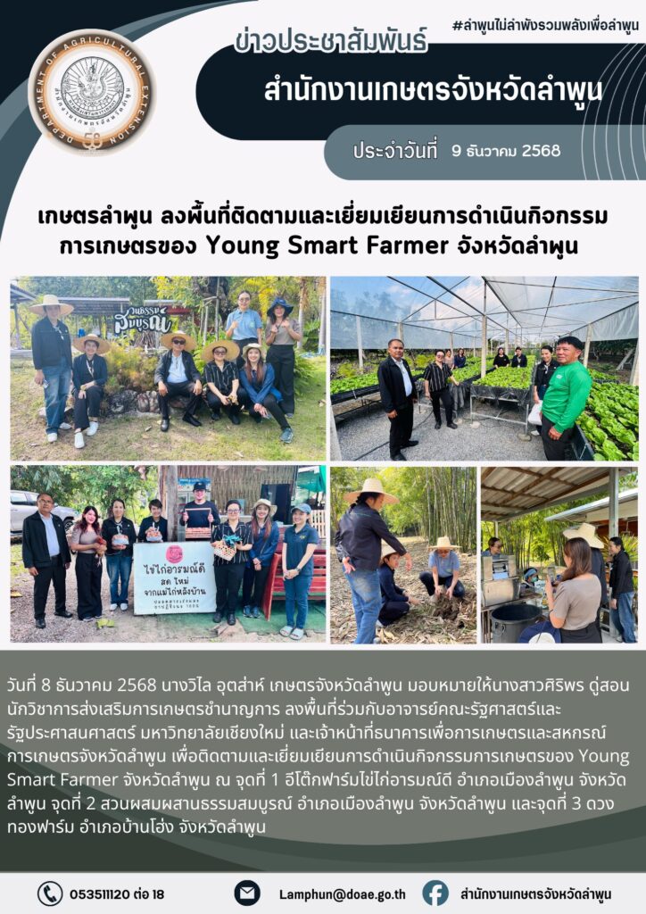 เกษตรลำพูน ลงพื้นที่ติดตามและเยี่ยมเยียนการดำเนินกิจกรรมการเกษตรของ Young Smart Farmer จังหวัดลำพูนBy admin_doae / 9 ธันวาคม 2025