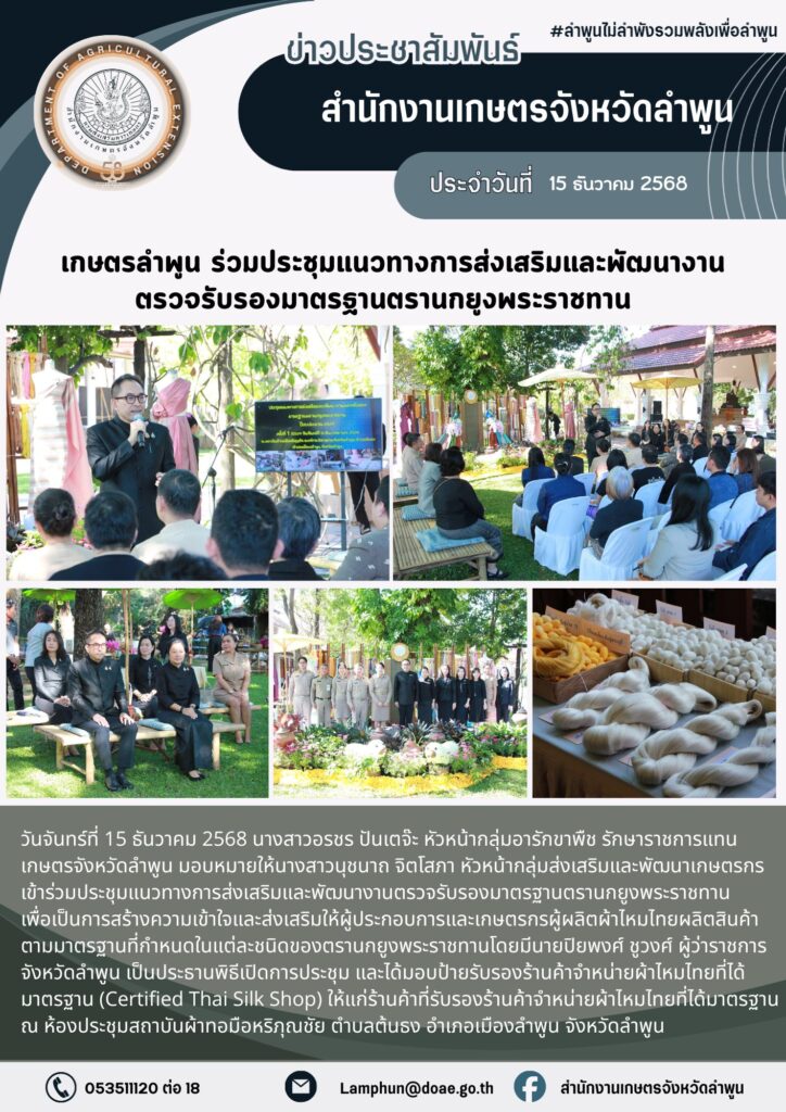 เกษตรลำพูน ร่วมประชุมแนวทางการส่งเสริมและพัฒนางานตรวจรับรองมาตรฐานตรานกยูงพระราชทานBy admin_doae / 16 ธันวาคม 2025