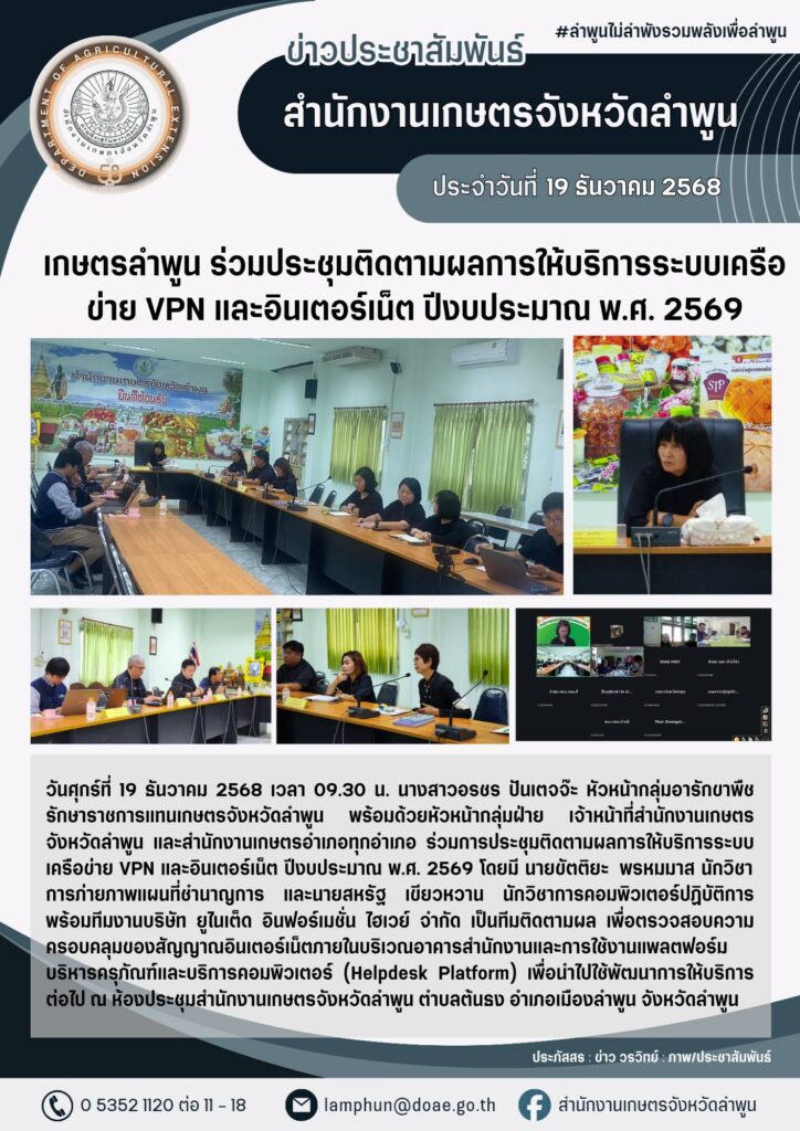 เกษตรลำพูน ร่วมประชุมติดตามผลการให้บริการระบบเครือข่าย VPN และอินเตอร์เน็ต ปีงบประมาณ พ.ศ. 2569By admin_doae / 23 ธันวาคม 2025