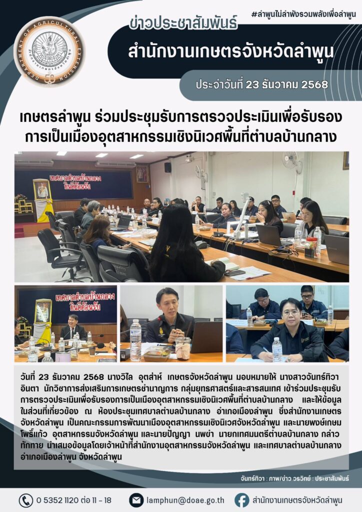 เกษตรลำพูน ร่วมประชุมรับการตรวจประเมินเพื่อรับรองการเป็นเมืองอุตสาหกรรมเชิงนิเวศพื้นที่ตำบลบ้านกลางBy admin_doae / 25 ธันวาคม 2025