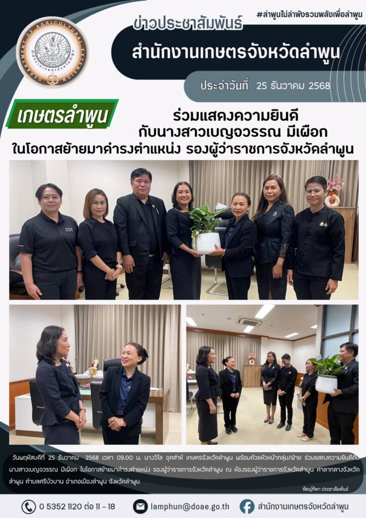 เกษตรลำพูน ร่วมการประชุมคณะกรรมการประสานงานการขับเคลื่อนและขยายผลโครงการอันเนื่องมาจากพระราชดำริ และหลักปรัชญาของเศรษฐกิจพอเพียง จังหวัดลำพูน ครั้งที่ 4/2568By admin_doae / 26 ธันวาคม 2025