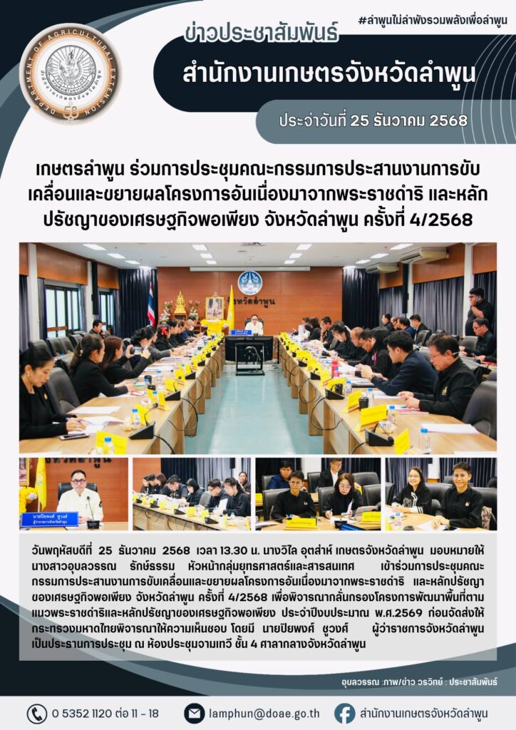 เกษตรลำพูน ร่วมการประชุมคณะกรรมการประสานงานการขับเคลื่อนและขยายผลโครงการอันเนื่องมาจากพระราชดำริ และหลักปรัชญาของเศรษฐกิจพอเพียง จังหวัดลำพูน ครั้งที่ 4/2568