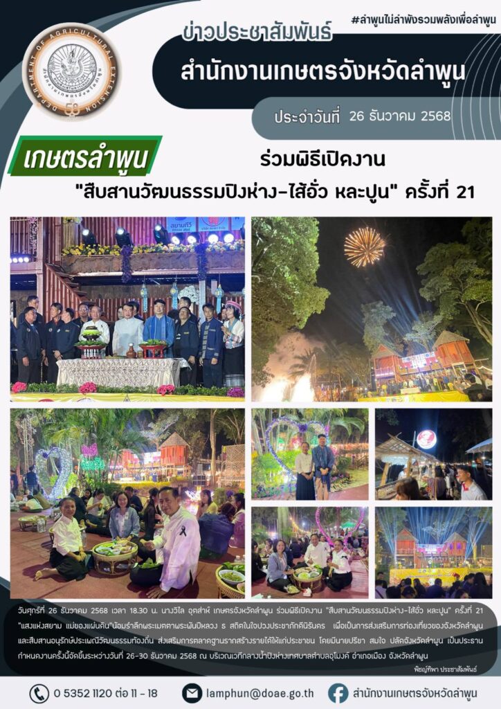 เกษตรลำพูน ร่วมพิธีเปิดงาน “สืบสานวัฒนธรรมปิงห่าง-ไส้อั่ว หละปูน” ครั้งที่ 21By admin_doae / 30 ธันวาคม 2025