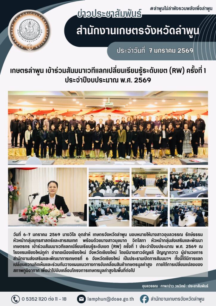 เกษตรลำพูน เข้าร่วมสัมมนาเวทีแลกเปลี่ยนเรียนรู้ระดับเขต (RW) ครั้งที่ 1 ประจำปีงบประมาณ พ.ศ. 2569By admin_doae / 12 มกราคม 2026
