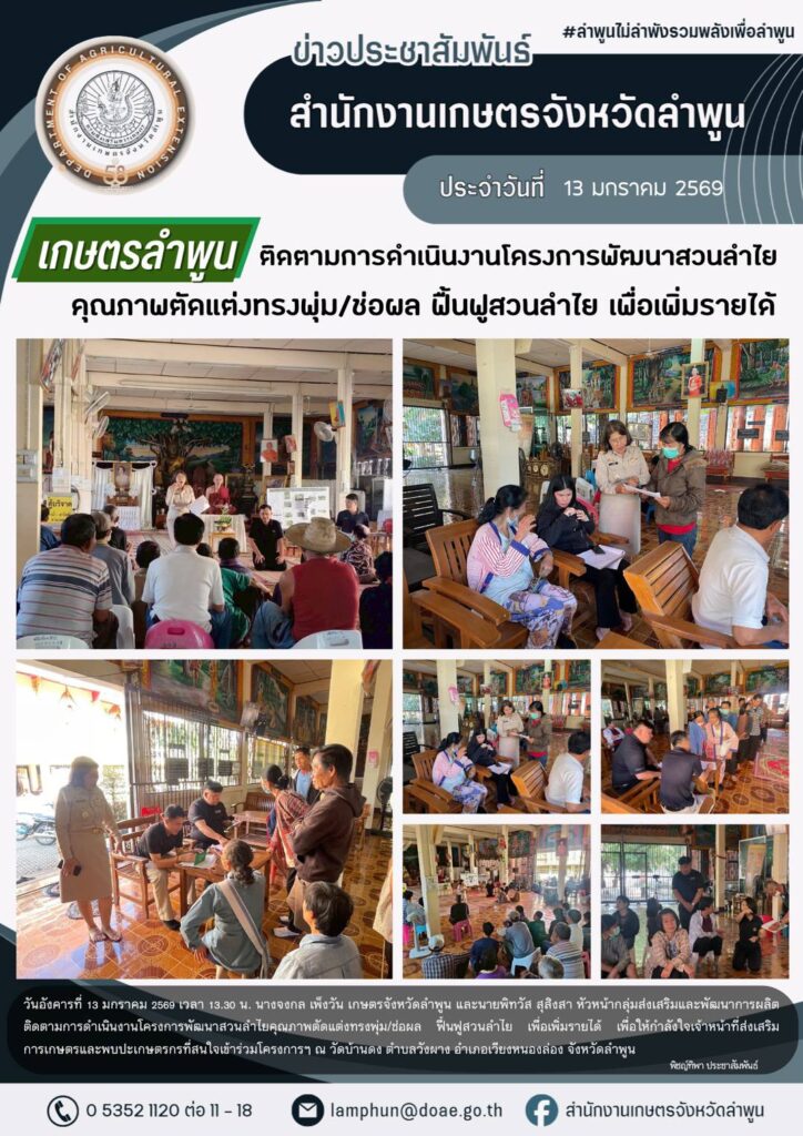 เกษตรลำพูน ติดตามการดำเนินงานโครงการพัฒนาสวนลำไยคุณภาพตัดแต่งทรงพุ่ม/ช่อผล ฟื้นฟูสวนลำไย เพื่อเพิ่มรายได้By admin_doae / 14 มกราคม 2026