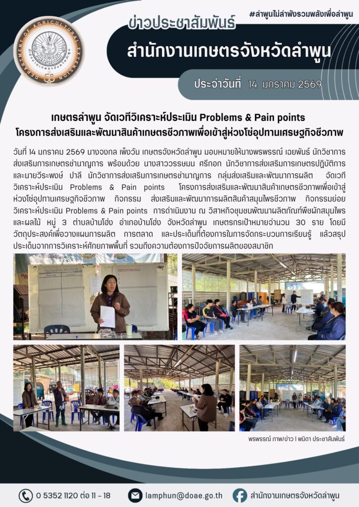 เกษตรลำพูน จัดเวทีวิเคราะห์ประเมิน Problems & Pain points โครงการส่งเสริมและพัฒนาสินค้าเกษตรชีวภาพเพื่อเข้าสู่ห่วงโซ่อุปทานเศรษฐกิจชีวภาพBy admin_doae / 15 มกราคม 2026