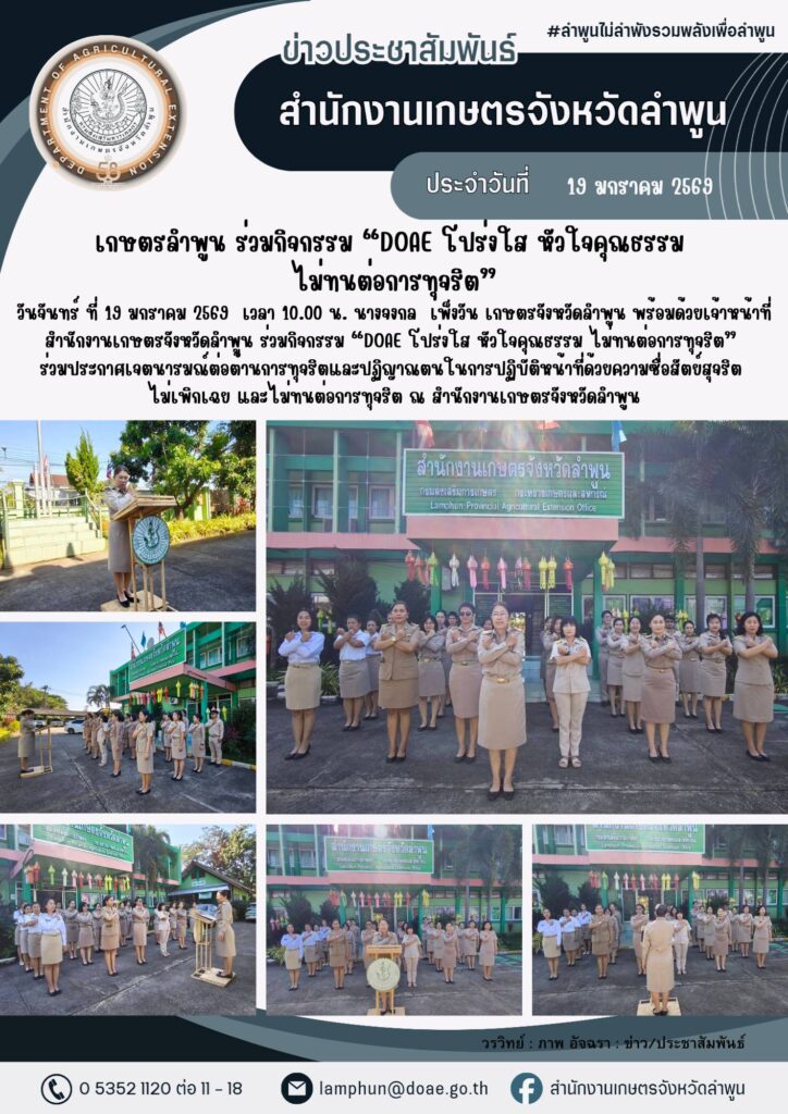 เกษตรลำพูน ประชุมประจำเดือนเจ้าหน้าที่สำนักงานเกษตรจังหวัดลำพูน (Provincial Meeting : PM) ครั้งที่ 1/2569