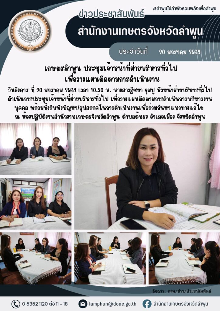 เกษตรลำพูน ประชุมเจ้าหน้าที่ฝ่ายบริหารทั่วไป เพื่อวางแผนติดตามการดำเนินงานBy admin_doae / 21 มกราคม 2026