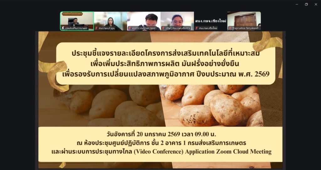 เกษตรลำพูน ร่วมประชุมการชี้แจงรายละเอียดโครงการส่งเสริมเทคโนโลยีที่เหมาะสมเพื่อเพิ่มประสิทธิภาพการผลิตมันฝรั่งอย่างยั่งยืน เพื่อรองรับการเปลี่ยนแปลงสภาพภูมิอากาศBy admin_doae / 21 มกราคม 2026
