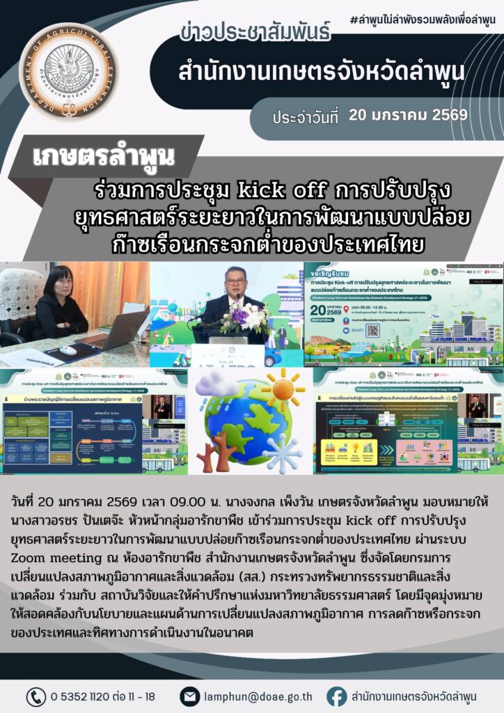 เกษตรลำพูน ร่วมการประชุม kick off การปรับปรุงยุทธศาสตร์ระยะยาวในการพัฒนาแบบปล่อยก๊าซเรือนกระจกต่ำของประเทศไทยBy admin_doae / 21 มกราคม 2026