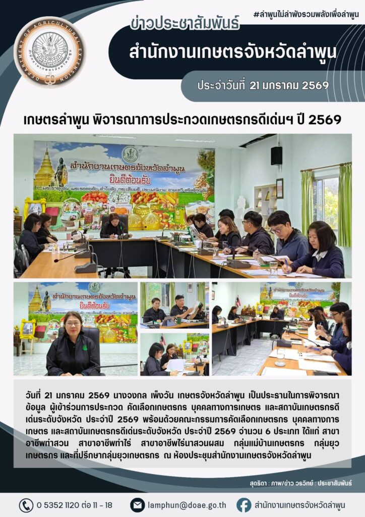 เกษตรลำพูน ร่วมประชุมคณะทำงานโครงการพัฒนานักวิชาการส่งเสริมการเกษตรมืออาชีพ ปี 2569