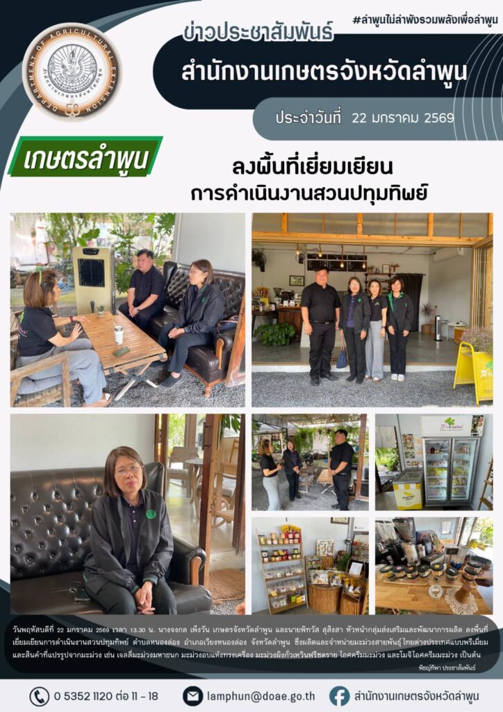 เกษตรลำพูนลงพื้นที่เยี่ยมเยียนการดำเนินงานสวนปทุมทิพย์ อำเภอเวียงหนองล่องBy admin_doae / 23 มกราคม 2026