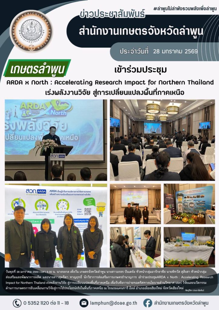 เกษตรลำพูนเข้าร่วมประชุมARDA x North : Accelerating Research Impact for Northern Thailand เร่งพลังงานวิจัย สู่การเปลี่ยนแปลงพื้นที่ภาคเหนือBy admin_doae / 30 มกราคม 2026