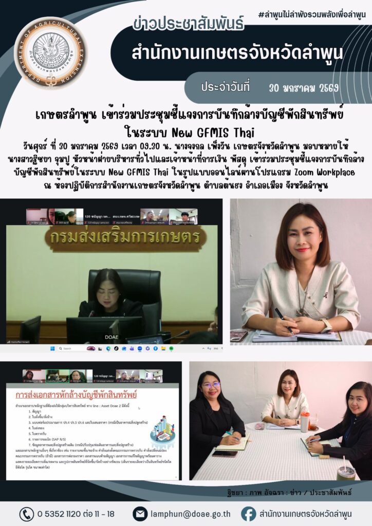 เกษตรลำพูน เข้าร่วมประชุมชี้แจงการบันทึกล้างบัญชีพักสินทรัพย์ในระบบ New GFMIS ThaiBy admin_doae / 2 กุมภาพันธ์ 2026