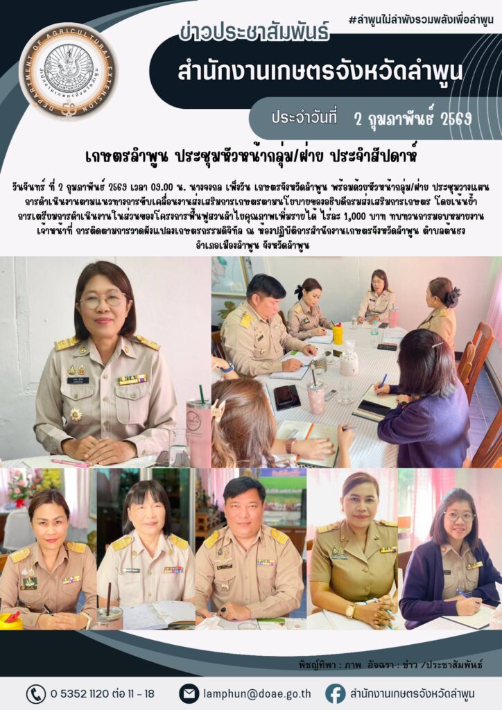 เกษตรลำพูน ประชุมเจ้าหน้าที่ฝ่ายบริหารทั่วไป เพื่อวางแผนติดตามการดำเนินงานBy admin_doae / 3 กุมภาพันธ์ 2026