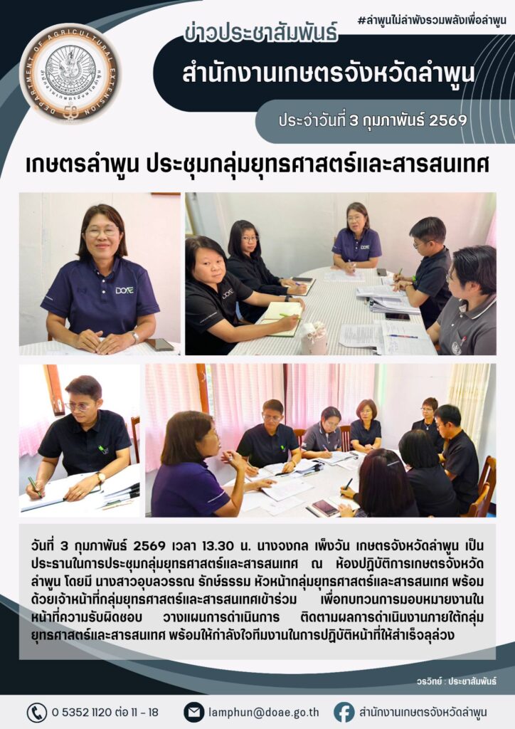 เกษตรลำพูน ร่วมลงพื้นที่ตรวจประเมินผลงานเชิงประจักษ์ของกำนันและผู้ใหญ่บ้าน เพื่อคัดเลือกผู้ที่สมควรได้รับรางวัล “กำนัน-ผู้ใหญ่บ้านยอดเยี่ยม” ประจำปี 2569 ระดับจังหวัด
