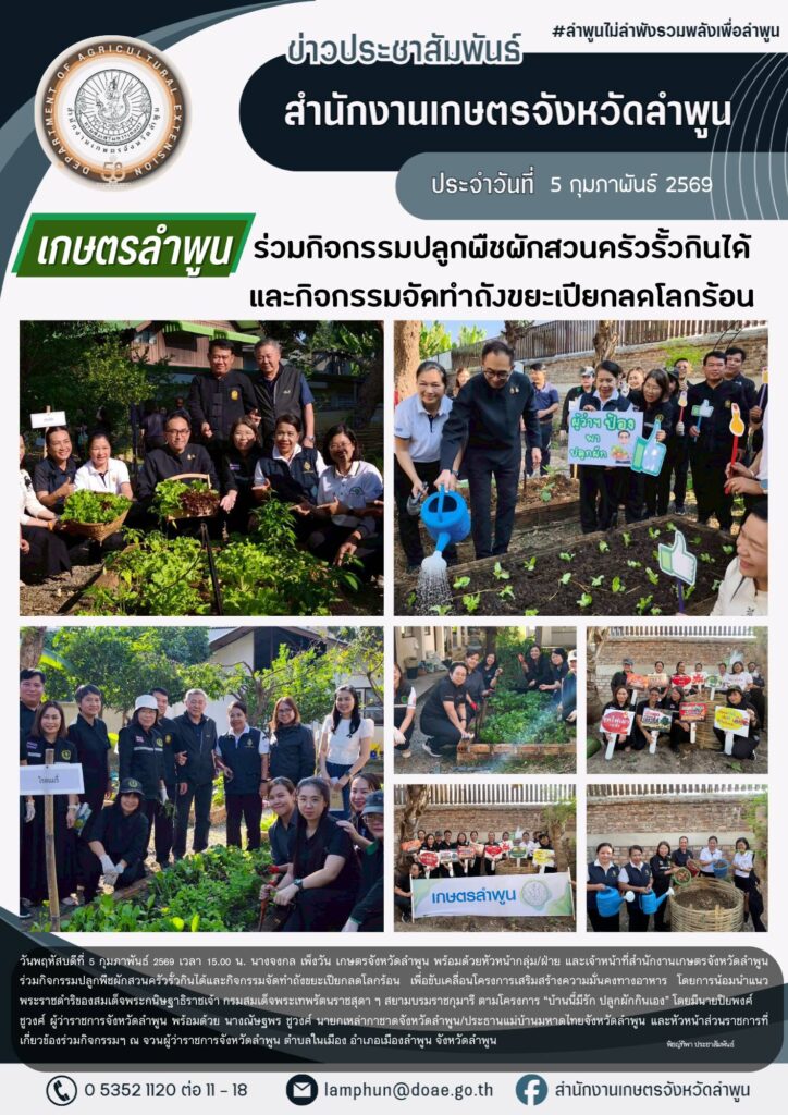 เกษตรลำพูนร่วมกิจกรรมปลูกพืชผักสวนครัวรั้วกินได้และกิจกรรมจัดทำถังขยะเปียกลดโลกร้อนBy admin_doae / 9 กุมภาพันธ์ 2026