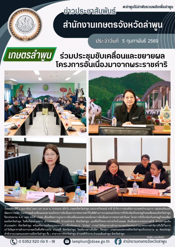 เกษตรลำพูนร่วมประชุมขับเคลื่อนและขยายผลโครงการอันเนื่องมาจากพระราชดำริBy admin_doae / 9 กุมภาพันธ์ 2026