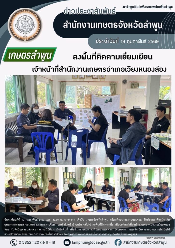 เกษตรลำพูนลงพื้นที่ติดตามเยี่ยมเยียนเจ้าหน้าที่สำนักงานเกษตรอำเภอเวียงหนองล่องBy admin_doae / 19 กุมภาพันธ์ 2026
