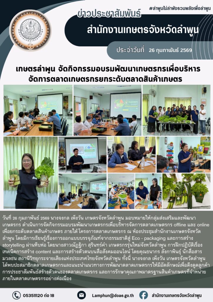 เกษตรลำพูน จัดกิจกรรมอบรมพัฒนาเกษตรกรเพื่อบริหารจัดการตลาดเกษตรกร ยกระดับตลาดสินค้าเกษตรBy admin_doae / 26 กุมภาพันธ์ 2026
