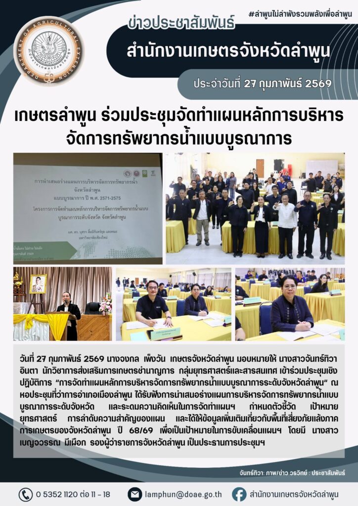 เกษตรลำพูนร่วมประชุมคณะทำงานศึกษาความเหมาะสมและแนวทางการสมัครเป็นเมืองอัจฉริยะจังหวัดลำพูน (LAMPHUN SMART CITY) ครั้งที่ 1/2569