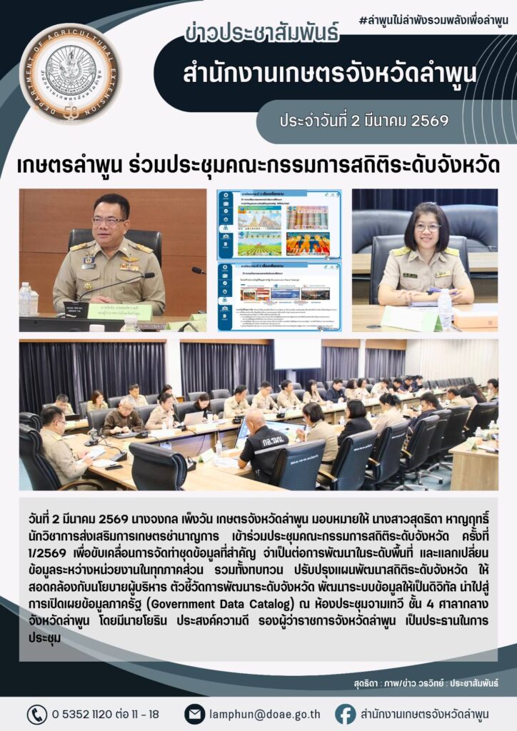 เกษตรลำพูน ร่วมแลกเปลี่ยนข้อมูลด้านการเกษตรเพื่อเตรียมการบริหารจัดการผลไม้ในฤดูการผลิต ปี 2569