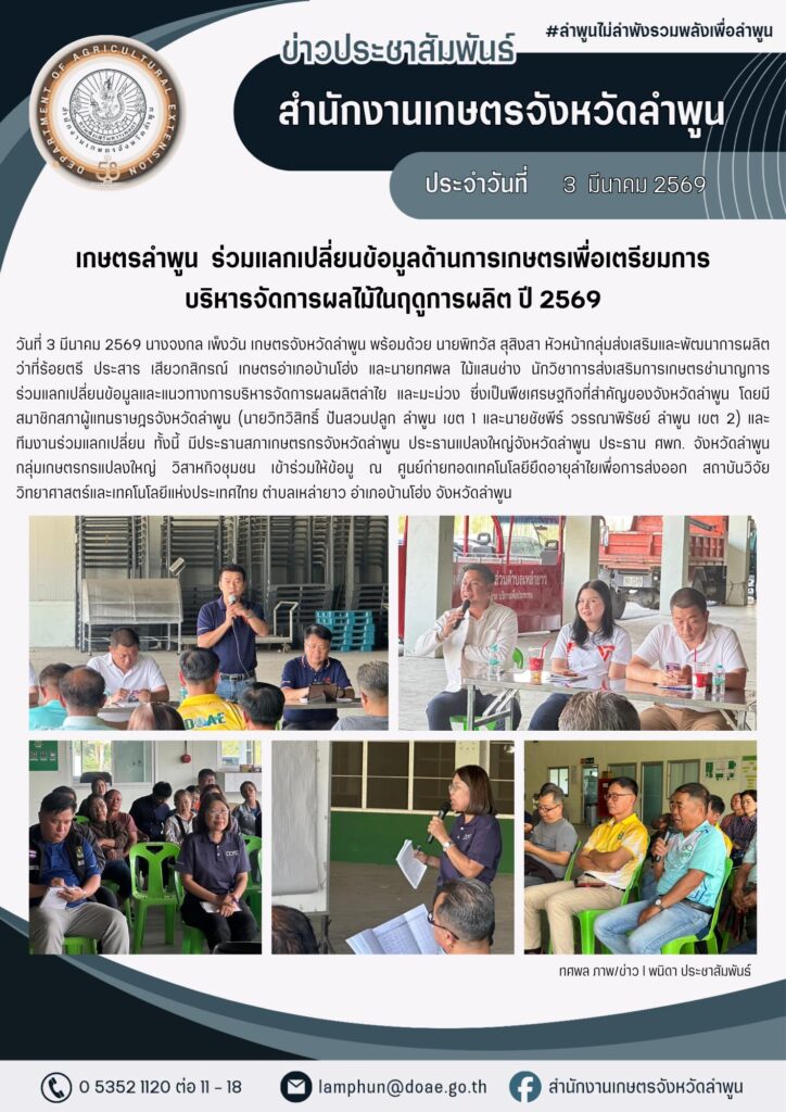 เกษตรลำพูน ร่วมแลกเปลี่ยนข้อมูลด้านการเกษตรเพื่อเตรียมการบริหารจัดการผลไม้ในฤดูการผลิต ปี 2569