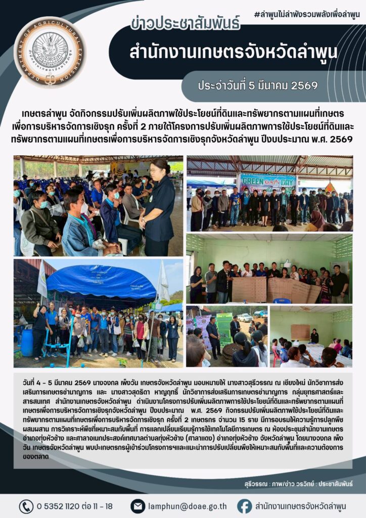 เกษตรลำพูน จัดกิจกรรมปรับเพิ่มผลิตภาพใช้ประโยชน์ที่ดินและทรัพยากรตามแผนที่เกษตร เพื่อการบริหารจัดการเชิงรุก ครั้งที่ 2 ภายใต้โครงการปรับเพิ่มผลิตภาพการใช้ประโยชน์ที่ดินและทรัพยากรตามแผนที่เกษตรเพื่อการบริหารจัดการเชิงรุกจังหวัดลำพูน ปีงบประมาณ พ.ศ. 2569
