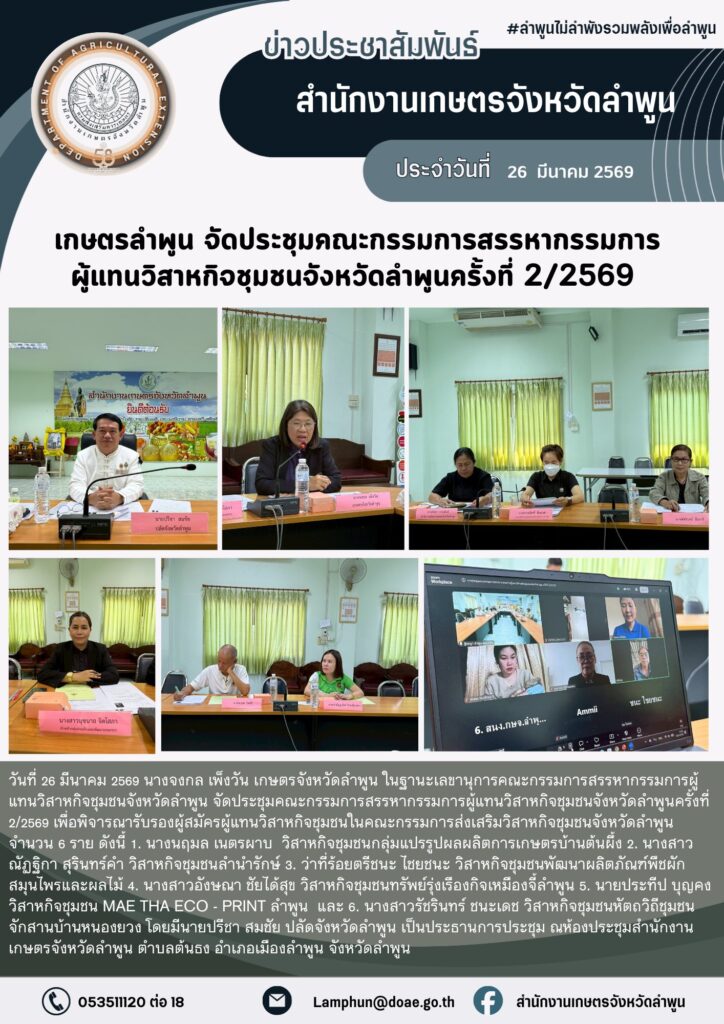 เกษตรลำพูน จัดประชุมคณะกรรมการสรรหากรรมการผู้แทนวิสาหกิจชุมชนจังหวัดลำพูนครั้งที่ 2/2569By admin_doae / 27 มีนาคม 2026