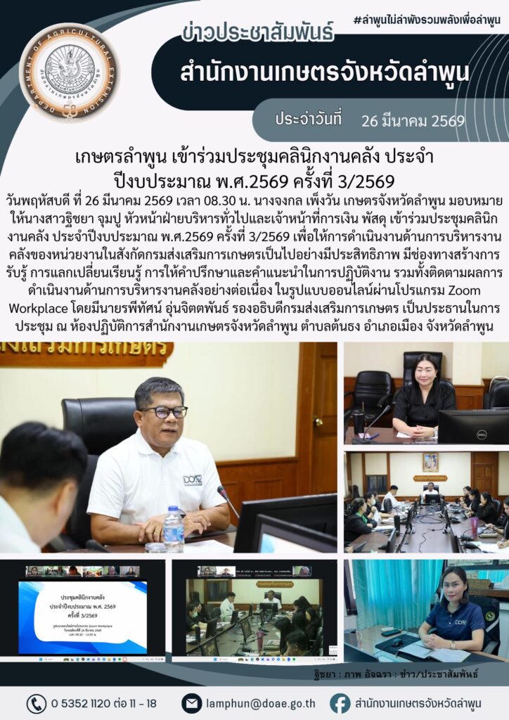เกษตรลำพูน เข้าร่วมประชุมคลินิกงานคลัง ประจำปีงบประมาณ พ.ศ.2569 ครั้งที่ 3/2569By admin_doae / 27 มีนาคม 2026