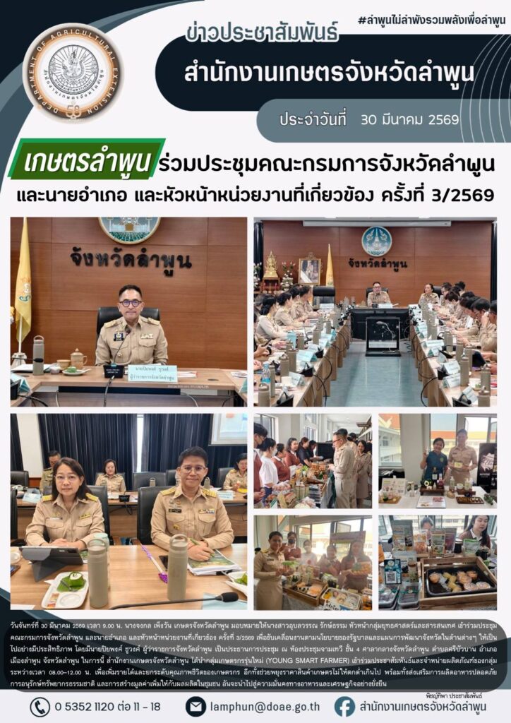 เกษตรลำพูนเข้าร่วมประชุมคณะกรมการจังหวัดลำพูน และนายอำเภอ และหัวหน้าหน่วยงานที่เกี่ยวข้อง ครั้งที่ 3/2569By admin_doae / 31 มีนาคม 2026