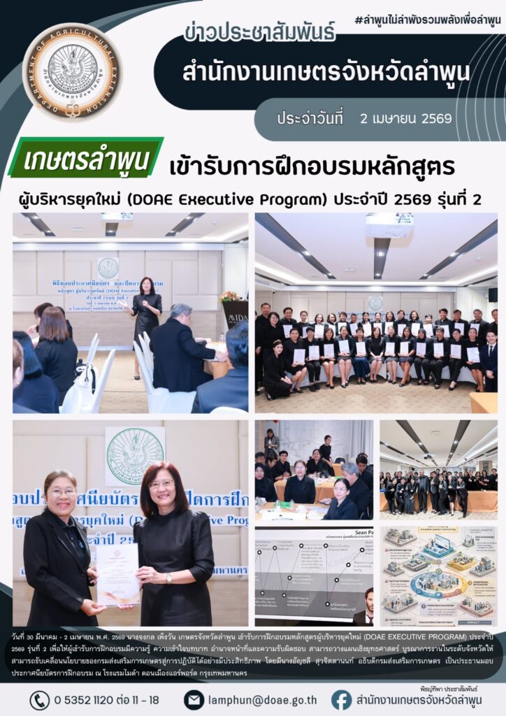 เกษตรจังหวัดลำพูน เข้ารับการฝึกอบรมหลักสูตรผู้บริหารยุคใหม่ (DOAE Executive Program) ประจำปี 2569 รุ่นที่ 2By admin_doae / 3 เมษายน 2026