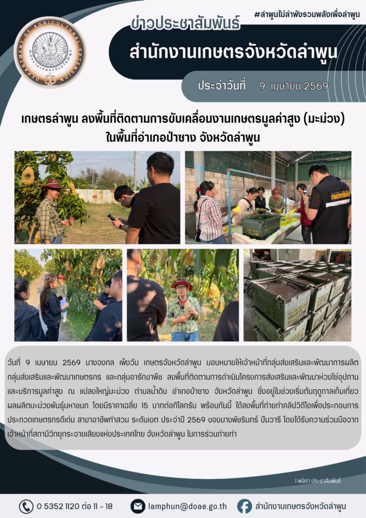 เกษตรลำพูน ลงพื้นที่ติดตามการขับเคลื่อนงานเกษตรมูลค่าสูง (มะม่วง) ในพื้นที่อำเภอป่าซาง จังหวัดลำพูนBy admin_doae / 10 เมษายน 2026