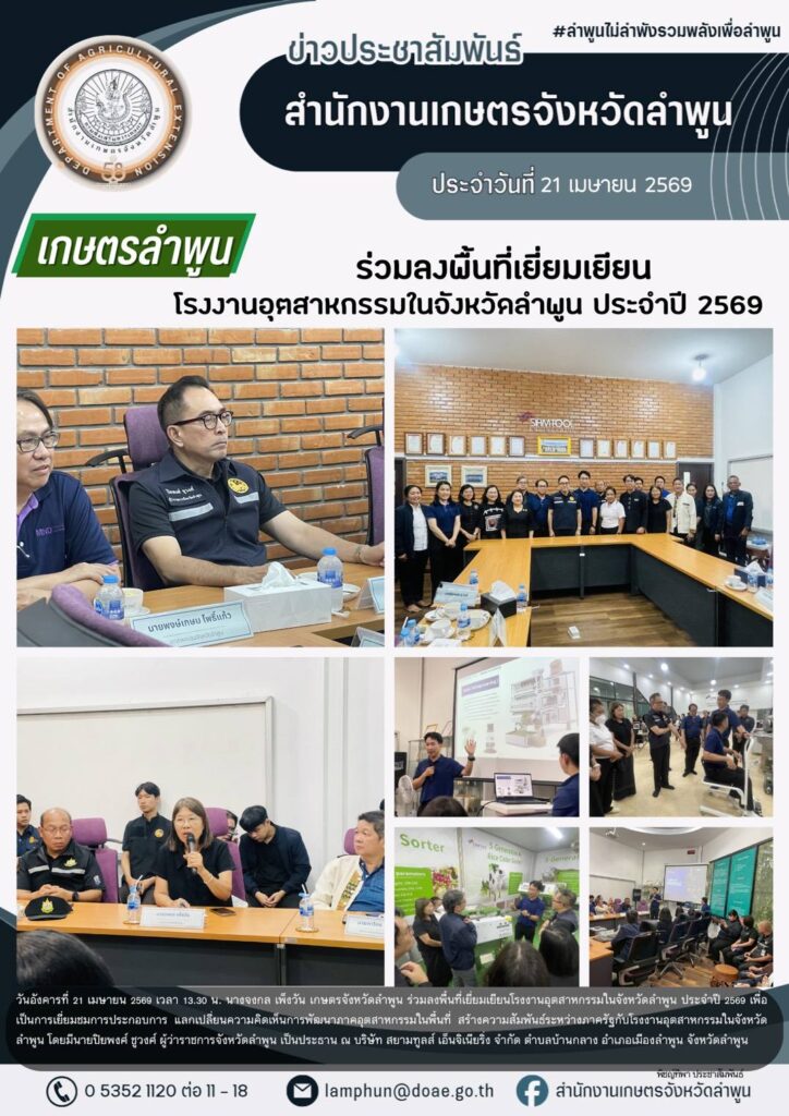 เกษตรลำพูนร่วมลงพื้นที่เยี่ยมเยียนโรงงานอุตสาหกรรมในจังหวัดลำพูน ประจำปี 2569By admin_doae / 22 เมษายน 2026
