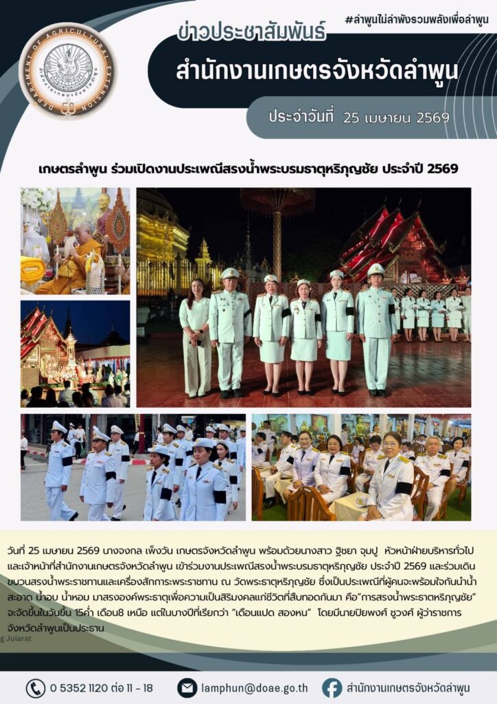 เกษตรลำพูน นำคณะเจ้าหน้าที่และเกษตรกร เข้ารับประกาศนียบัตร การคัดเลือกเกษตรกร บุคคลทางการเกษตร สถาบันเกษตรกรดีเด่น ระดับจังหวัด ประจำปี 2569