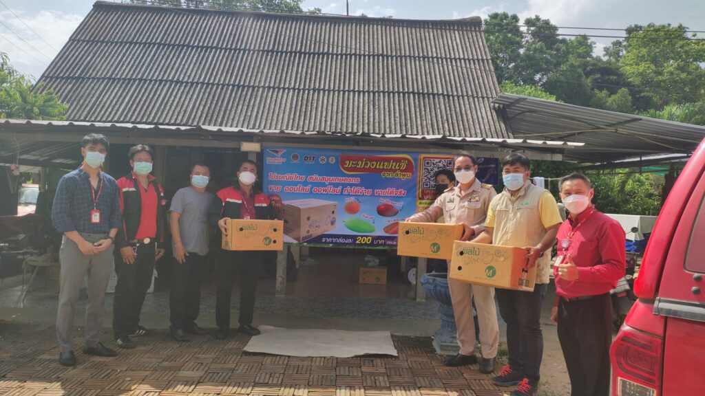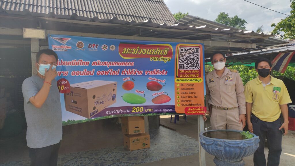 วันที่ 23 พฤษภาคม 2565 นายวิชัย ตู้แก้ว เกษตรจังหวัดลำพูน มอบหมายให้ นายกิติศักดิ์ วงศ์สิงห์ นักวิชาการส่งเสริมการเกษตรปฏิบัติการ เข้าร่วมขับเคลื่อนการกระจายสินค้ามะม่วงจังหวัดลำพูน เพื่อจำหน่ายในพื้นที่นิคมอุตสาหกรรมทั่วประเทศ ในกิจกรรมไปรษณีย์ไทย สนับสนุนเกษตรกร โดยเริ่มส่งของรอบแรกในวันนี้ ณ แปลงใหญ่มะม่วงวังผาง ตำบลวังผาง อำเภอเวียงหนองล่อง จังหวัดลำพูน