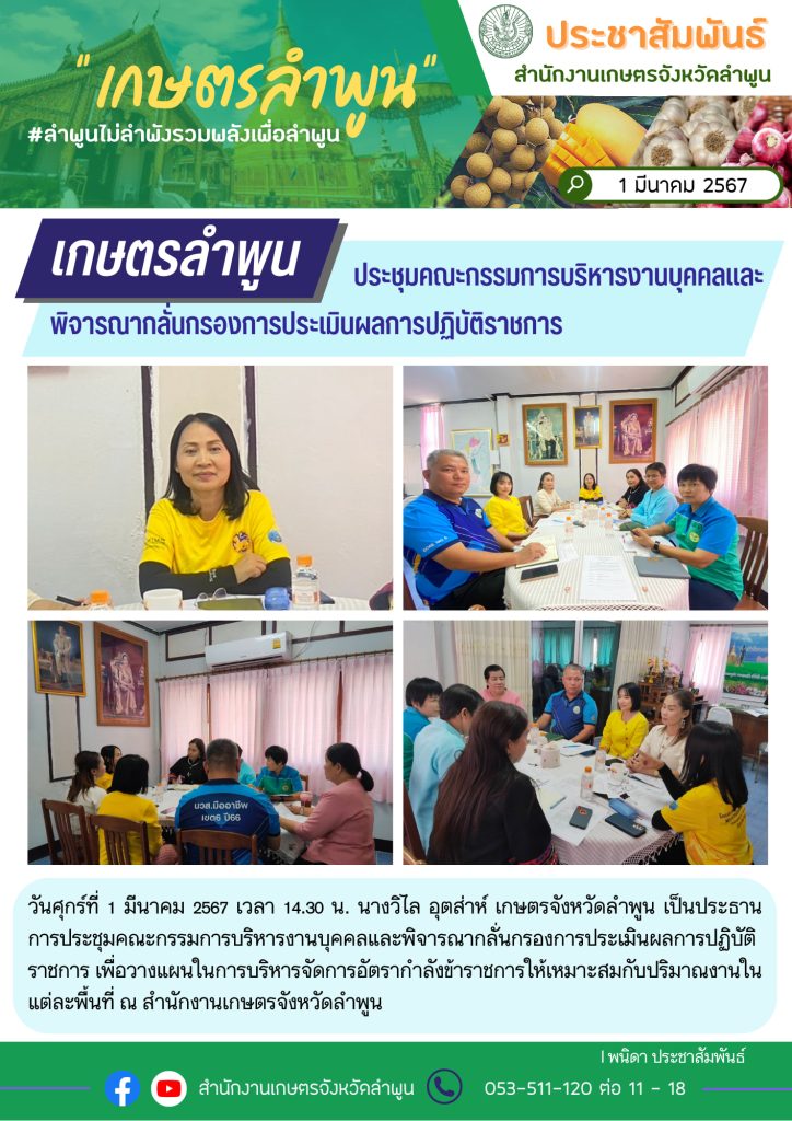 ข่าวประชาสัมพันธ์ เกษตรลำพูน ประชุมคณะกรรมการบริหารงานบุคคลและพิจารณากลั่นกรองการประเมินผลการปฏิบัติราชการ 4 มีนาคม 2024 Previous เกษตรลำพูน จัดอบรมพัฒนาทักษะความรู้แก่เกษตรกรในการผลิตแหนแดง เพื่อใช้ในการเกษตรและลดต้นทุนการผลิต ณ อ.บ้านโฮ่ง จ.ลำพูน Newer เกษตรลำพูน ร่วมพิธีถวายเครื่องราชสักการะแด่พระบาทสมเด็จพระบรมชนกาธิเบศรมหาภูมิพลอดุลยเดชมหาราชบรมนาถบพิตร “พระบิดาแห่งมาตรฐานการช่างไทย”💛🇹🇭 You May Also Like เกษตรลำพูน ลงพื้นที่เยี่ยมเยียนเกษตรกรผู้เข้าคัดเลือกเกษตรกร บุคคลทางการเกษตร และสถาบันเกษตรกรดีเด่น ปี 2567″ 10 มกราคม 2024 เกษตรลำพูน ร่วมประชุมคณะกรรมการจังหวัดเพื่อนพิจารณาการขออนุญาตผลิตกัญชาและกัญชง 2 เมษายน 2024 เกษตรลำพูน ประชุมชี้แจงแนวทางการดำเนินงานตามตัวชี้วัดการปฏิบัติราชการของจังหวัด ปีงบประมาณ 2566 21 กุมภาพันธ์ 2023