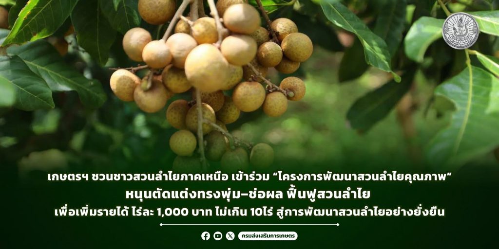 รองอธิบดีฯ ลงพื้นที่พบปะเกษตรกร ชี้แจงแนวทางการดำเนินโครงการพัฒนาสวนลำไยคุณภาพตัดแต่งทรงพุ่ม/ช่อผล ฟื้นฟูสวนลำไย เพื่อเพิ่มรายได้